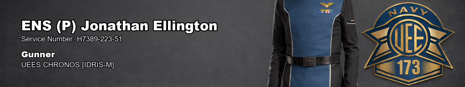 UNITED EMPIRE OF EARTH NAVY2ND FLEET 173RD BATTLEGROUP MILITARY HEADQUARTERS OFFICIAL PERSONNEL RECORDNAME: Jonathan Ellington CURRENT RANK: Ensign (P) RANK ABBREVIATION: ENS (P) STATUS: Active Service PRIMARY POSITION: Combat Pilot SPECIALTY: Remote Turret Specialist UNIT: UEES CHRONOS [IDRIS-M] OFFICIAL ENTRYIt is hereby entered into record that Jonathan Ellington has successfully completed the qualification designated as EPRP effective Jan 25, 2026. The Emergency Pilot Replacement Program is awarded only where a member has shown the ability to meet the required standard for temporary flight duty under command authority. It is not a routine qualification, nor does it place the holder on the same standing as a fully qualified Naval Flight Academy graduate. It exists to meet immediate operational need and to place limited trust where that trust has been earned. You have completed the required standard and are therefore recognised as qualified under EPRP from the above date. This qualification remains valid for 3 months from Jan 25, 2026 only, unless it is earlier withdrawn, replaced, or superseded by command authority. Take this for what it is: a mark of trust, but also a temporary one. Use the time well, carry the responsibility properly, and understand both the opportunity and the limit that come with it. This action reflects successful completion under command-recognized training and qualification authority. AUTHORITYBy authority of the Commanding Officer, this entry is entered into the official records of the 173rd Battlegroup and recognized as a formal personnel action of the United Empire of Earth Navy. SIGNED// VADM Marcus Jett 173rd Battlegroup Commander, 2nd Fleet RECORDS OFFICE USE ONLYFiled with the UEE Military Records Department Recorded by Petty Officer Jake Biggins